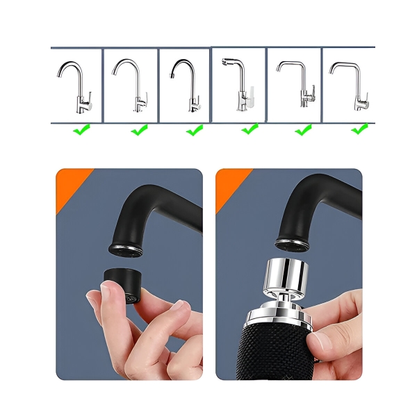 Nu este nevoie de instalator! Pur și simplu scoateți aeratorul dvs. actual și răsuciți adaptorul FAUCETI.