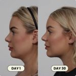 Compresia ușoară ascendentă ajută la reducerea umflăturilor și la definirea liniei maxilarului în timp.