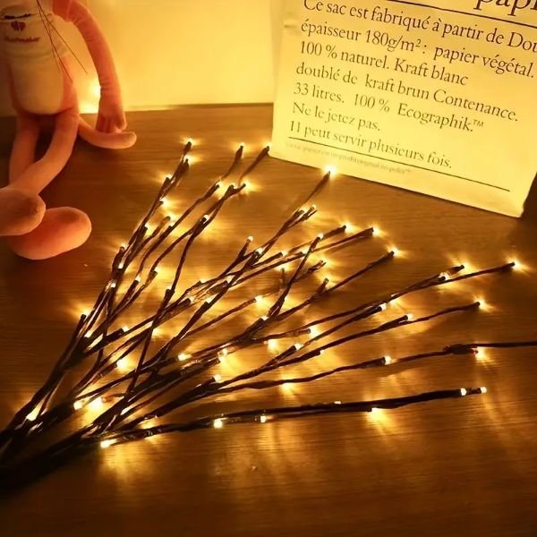 O colecție de lumini cu LED-uri pentru ramuri cuprinde trei ramuri, fiecare ramură având 20 de LED-uri, totalizând 60 de suporturi de lampă mici, oferind o iluminare amplă pentru a stabili o ambianță confortabilă și primitoare.