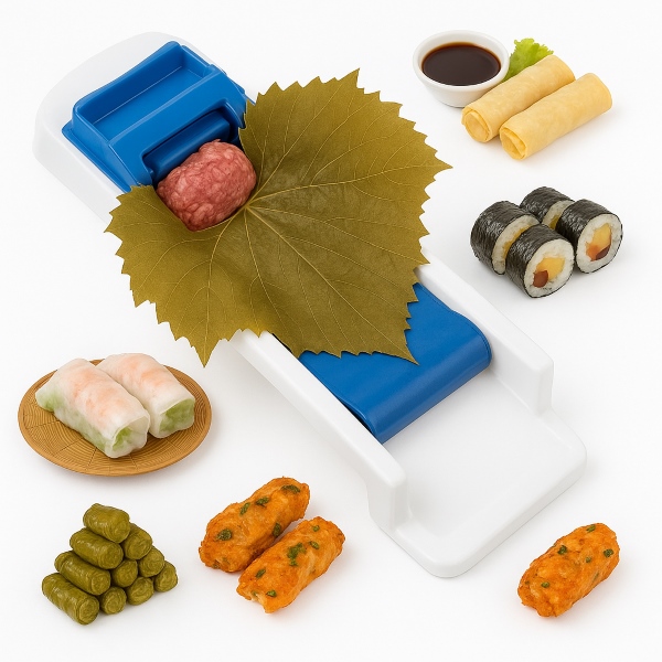 FOODROLL nu este doar pentru frunze de struguri! Este ideală pentru a înfășura dolma, sarmale, sushi, rulouri de carne sau rulouri vegetariene precum falafel și rulouri de primăvară. Faceți ușor rulouri de dimensiunea unei gustări pentru copii, petreceri sau picnicuri – potrivite pentru tot felul de umpluturi.