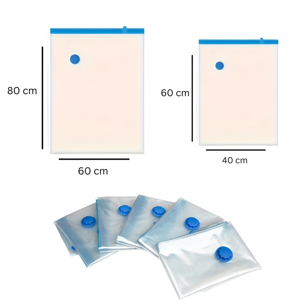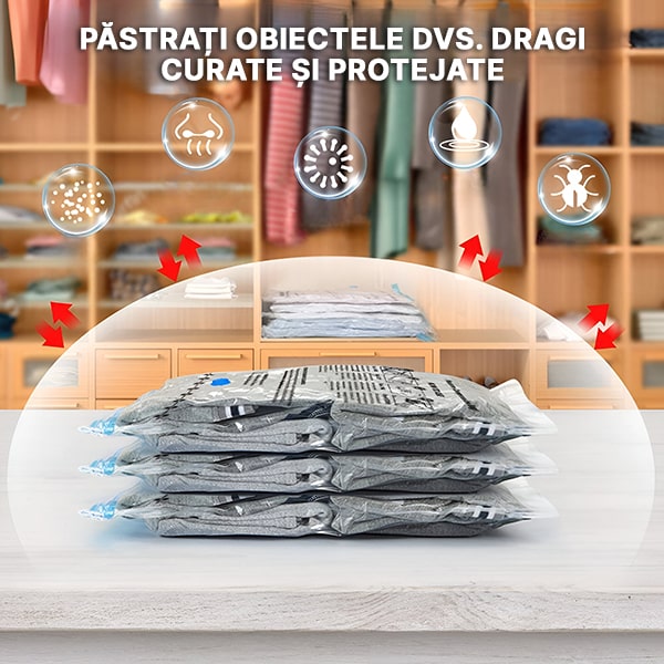 Rămâneți fără spațiu în dulap? Vă chinuiți să înghesuiți totul în valiză? Sacii de depozitare în vid VACKBAGS comprimă articolele voluminoase cu până la 80%, oferindu-vă spațiu instantaneu pentru ceea ce contează. Pur și simplu împachetați hainele sau lenjeria de pat, sigilați sacul și folosiți orice aspirator de uz casnic pentru a scoate aerul – durează mai puțin de 60 de secunde. Mai mult spațiu, mai puțină dezordine, zero bătăi de cap.