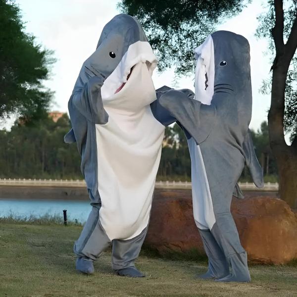 Design: Pătură în formă de rechin, sac de dormit și costum, toate la un loc