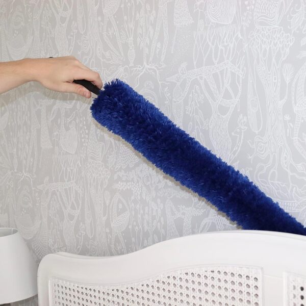 Utilizați DUSTOFF pentru a curăța rafturile înalte, balustradele, șinele de la perdele și alte suprafețe greu accesibile. Lungimea sa de 75 cm și capul pufos captează eficient praful, asigurând o curățare completă de fiecare dată.
