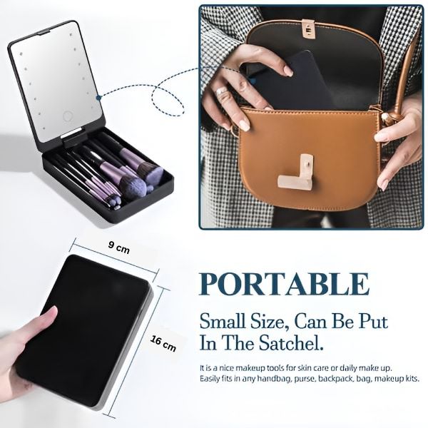 💡 Oglindă LED încorporată în carcasa compactă pentru retușuri din mers.