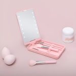 Fiecare set vine cu o cutie compactă care are o oglindă LED integrată, perfectă pentru retușuri în mișcare, călătorii sau depozitare ușoară.