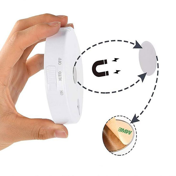 Instalați-o oriunde! Magnetul încorporat vă permite să o plasați pe orice suprafață de fier sau să utilizați banda adezivă cu două fețe pentru a o lipi pe orice suprafață plană.